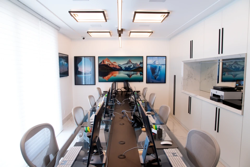 Dispomos de salas equipadas para reunião, para grupos de de até 6 pessoas, com internet, telefone, monitor para projeção e mobiliário ergonômico. Entre em contato conosco!